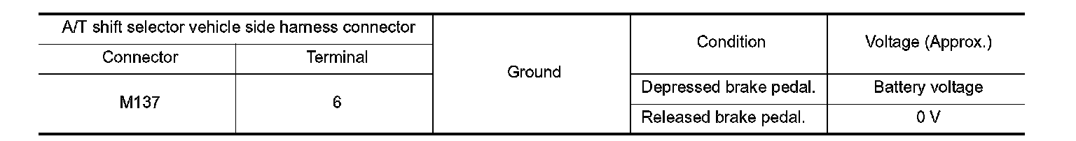 4.Check voltage between A/T shift selector vehicle side harness connector terminal and ground.