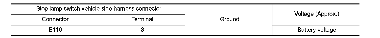 4.Check voltage between stop lamp switch vehicle side harness connector terminal and ground.