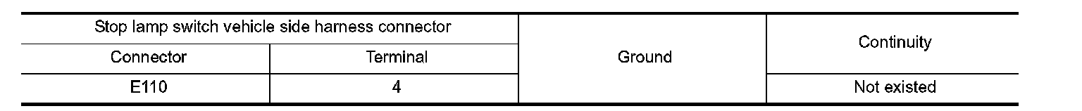 Check continuity between stop lamp switch vehicle side harness connector terminal and ground.