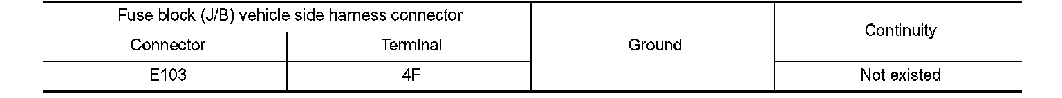 Check continuity between fuse block (J/B) vehicle side harness connector terminal and ground.