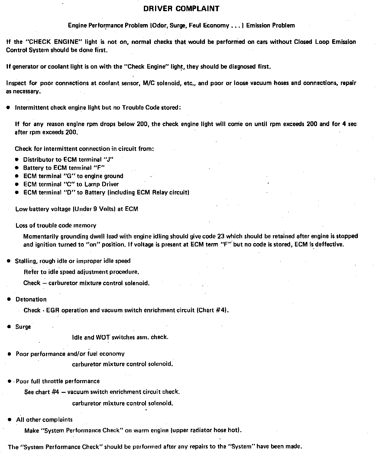Driver Complaints (Intermittent or No Code Available)