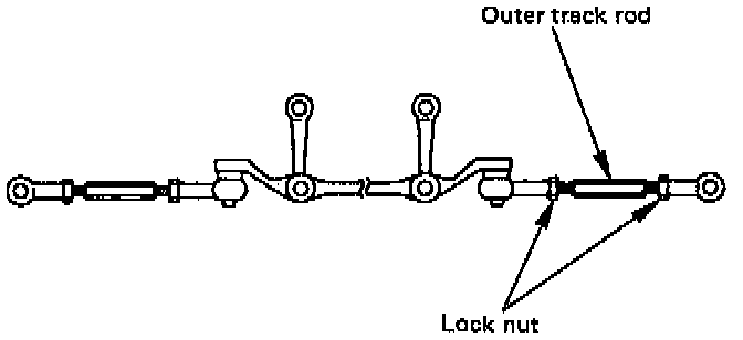 To adjust toe-in angle, loosen locknut on the outer track rod and turn outer track rod with the same degree as right and left,