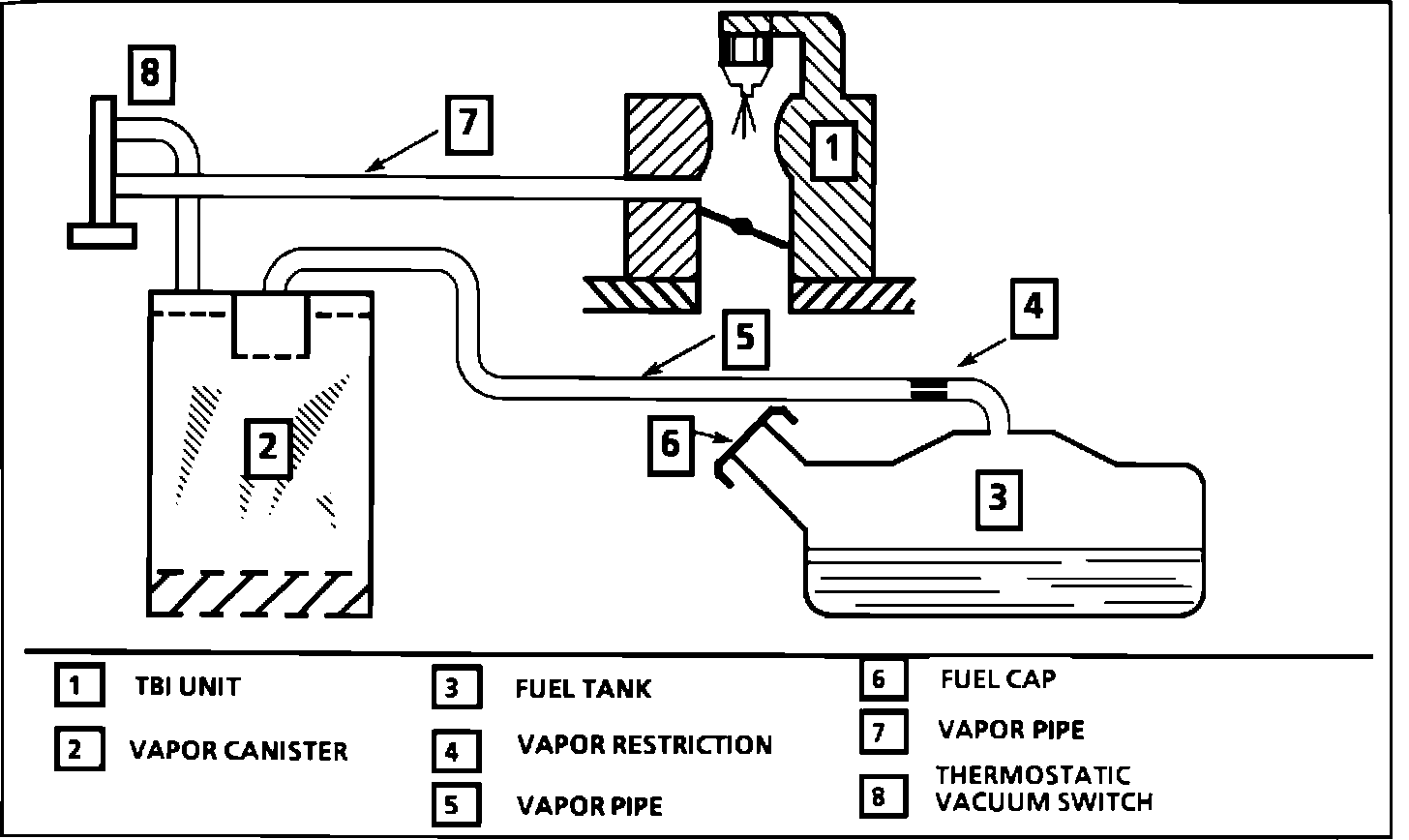 FUEL VAPOR LINES, FUEL TANK AND FILLER CAP INSPECTION