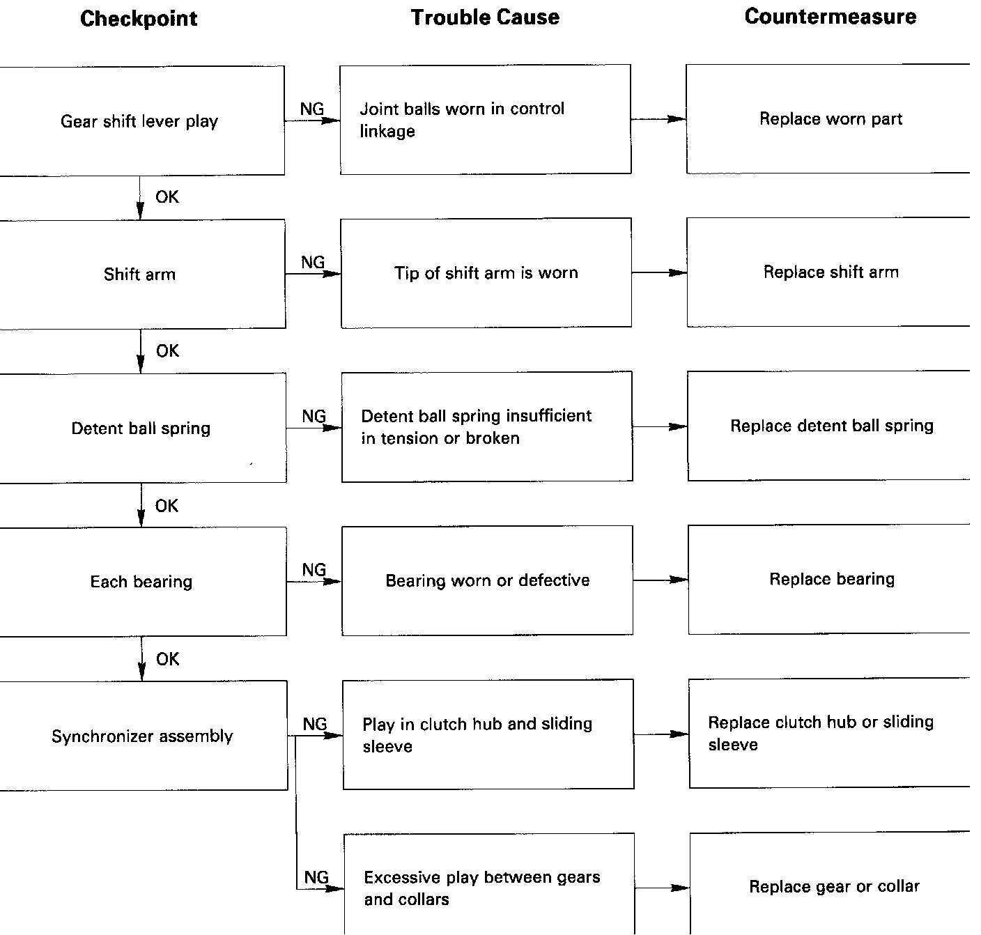 Hard gear shifting may also result from dragging clutch so that the function of the clutch should be checked before inspection of the transmission unit for troubles.