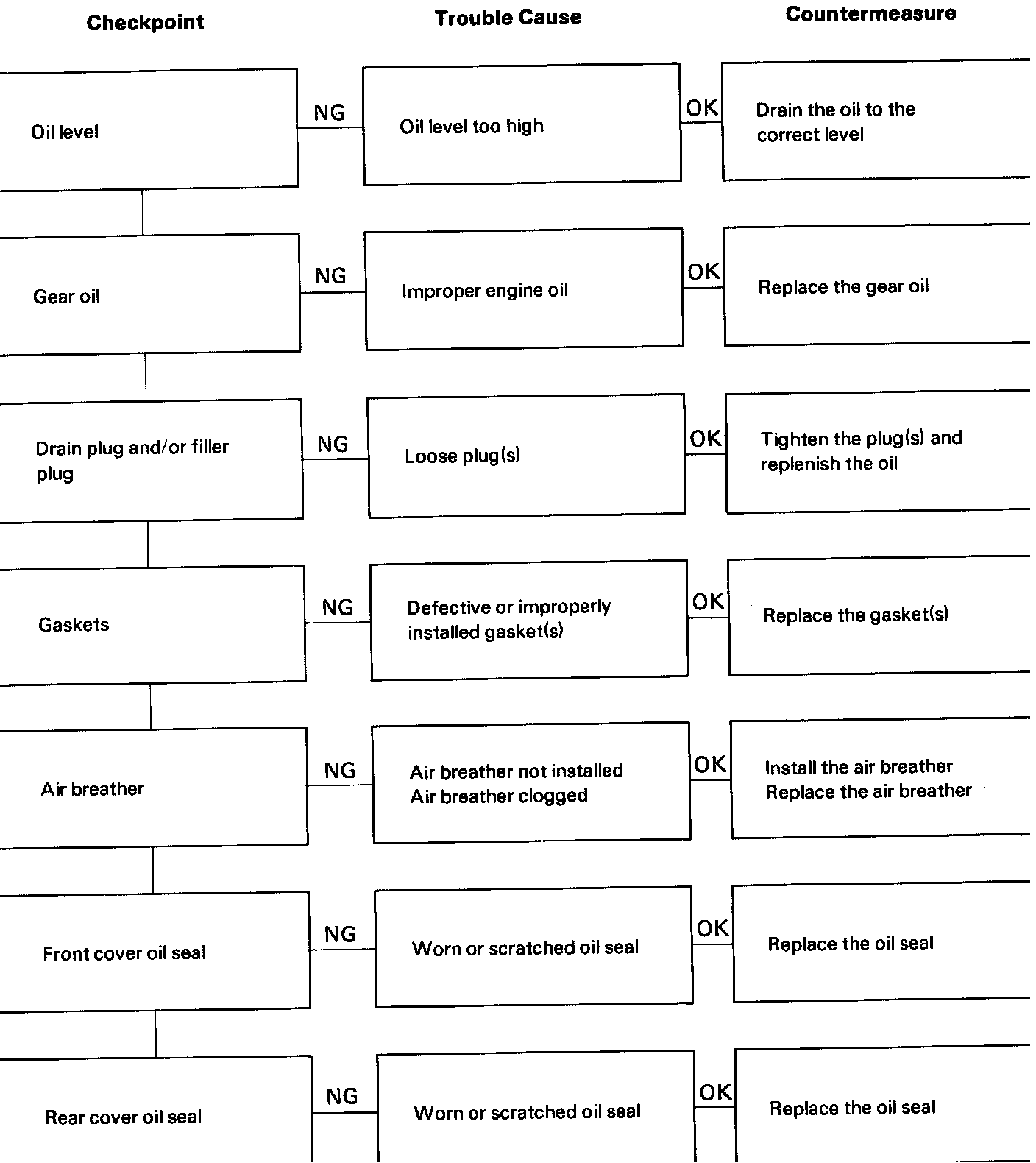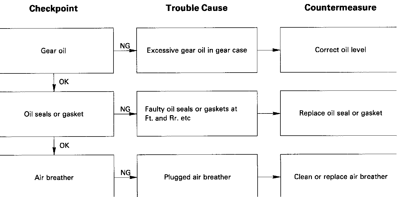 Refer to this Section to quickly troubleshooting and repair engine problems. Each diagnostic chart has three headings arranged from left to right.