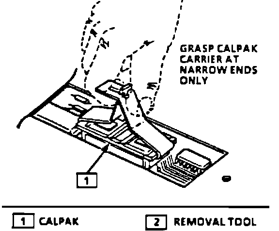 - Remove CALPAK, using CALPAK removal tool, Grasp CALPAK carrier at narrow ends only. To remove, gently rock the carrier from end to end while applying a firm upwards force.