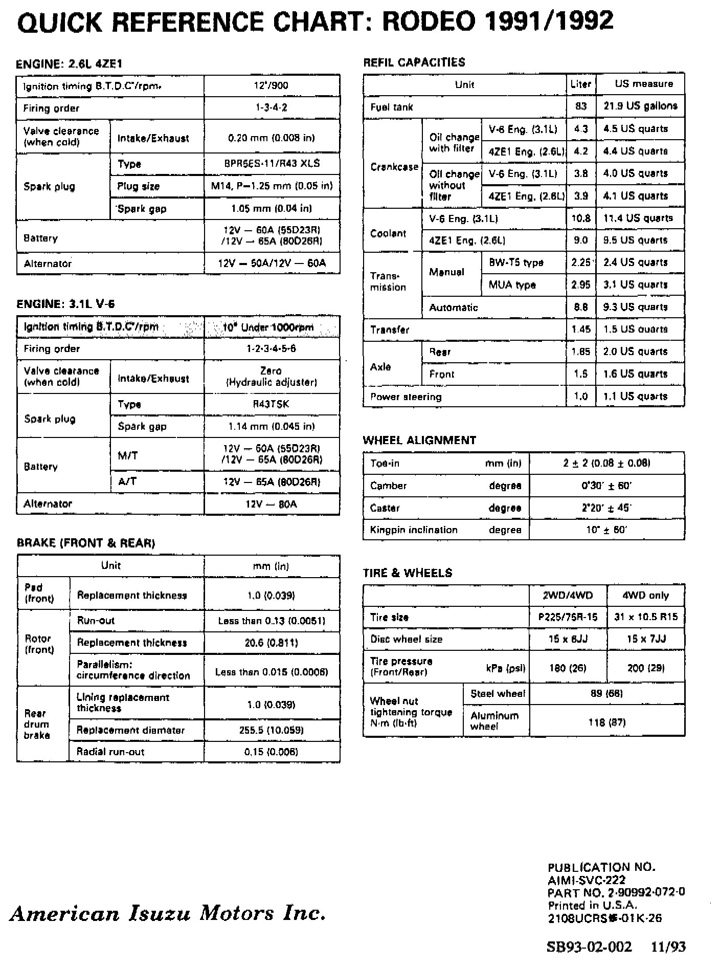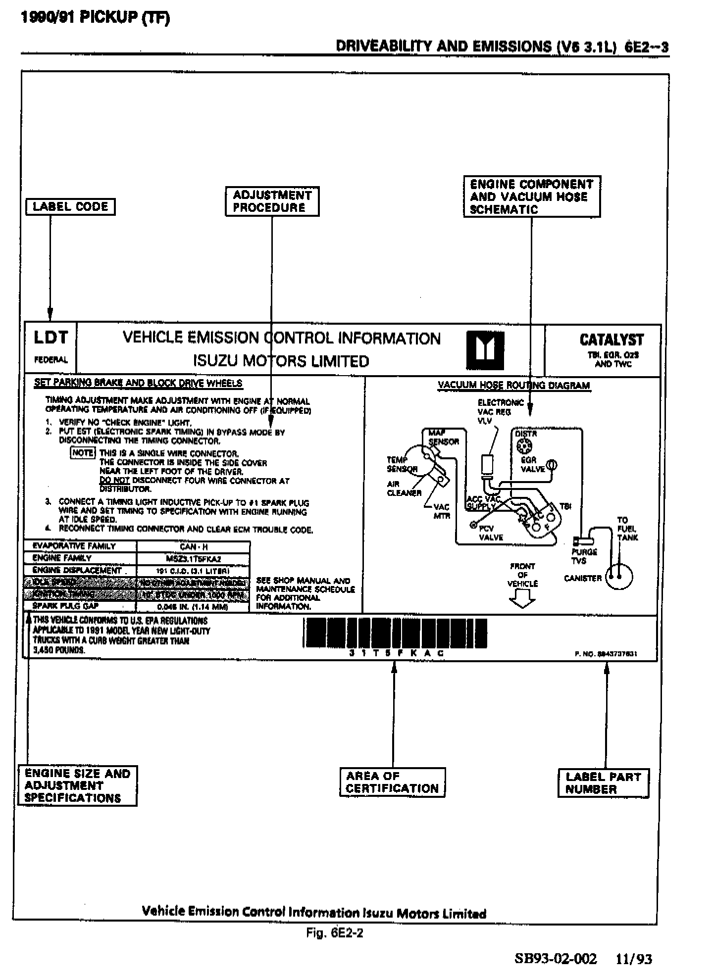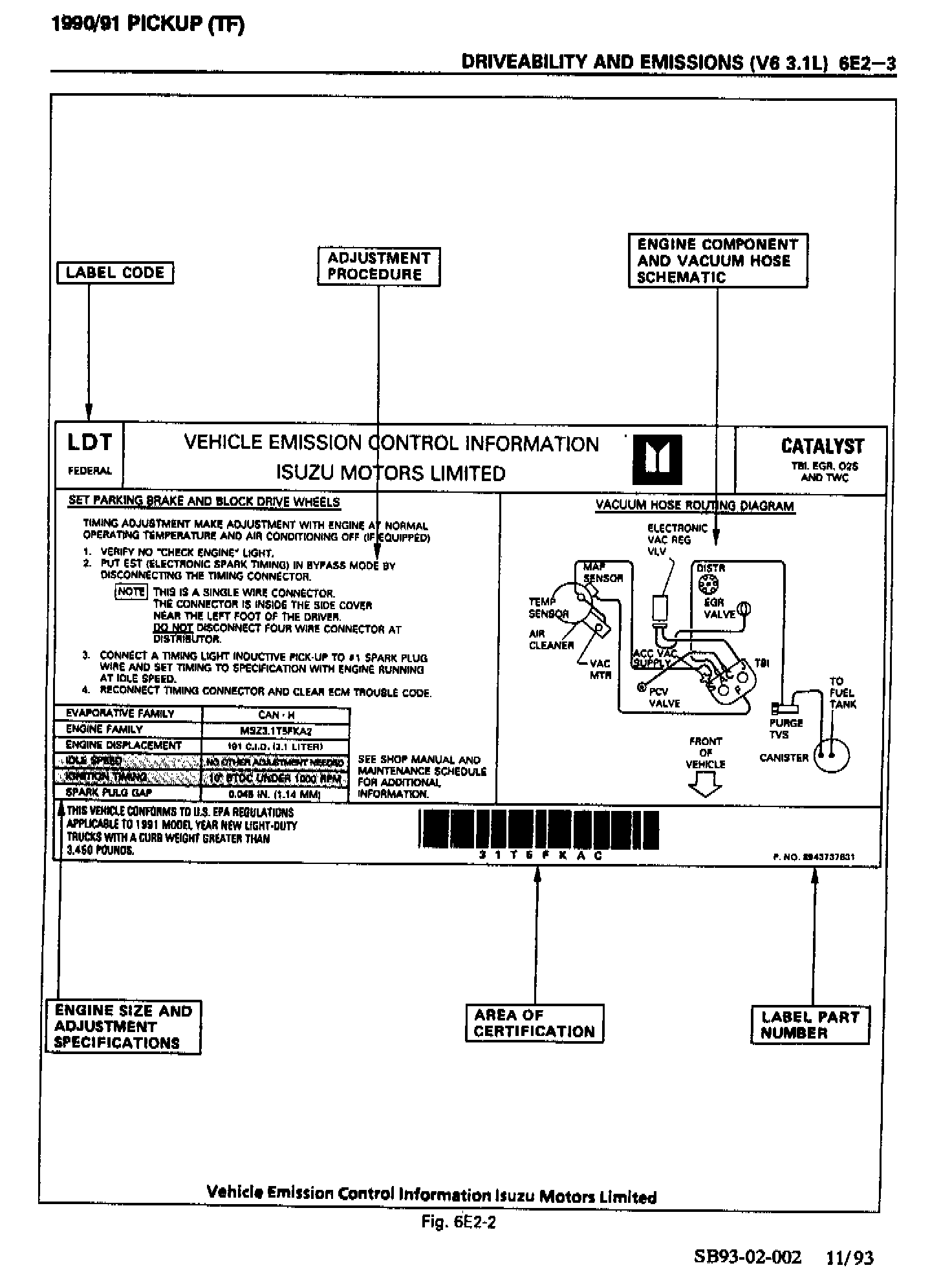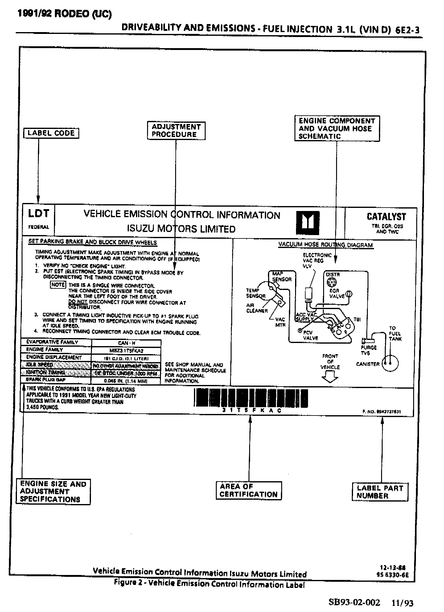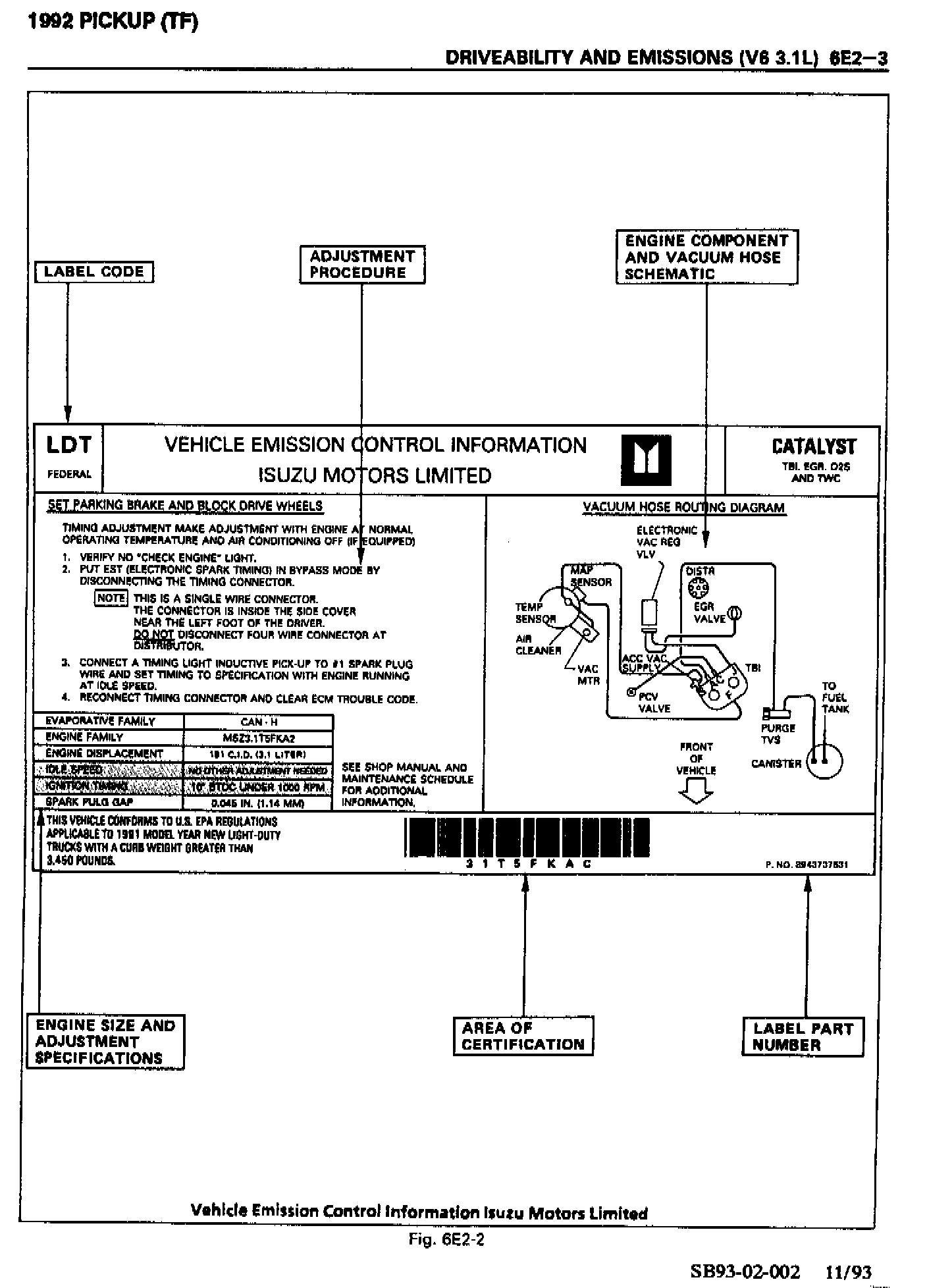 1991-92 Rodeo (UC) and Pickup (TF) models equipped with 3.1L V6 engine.