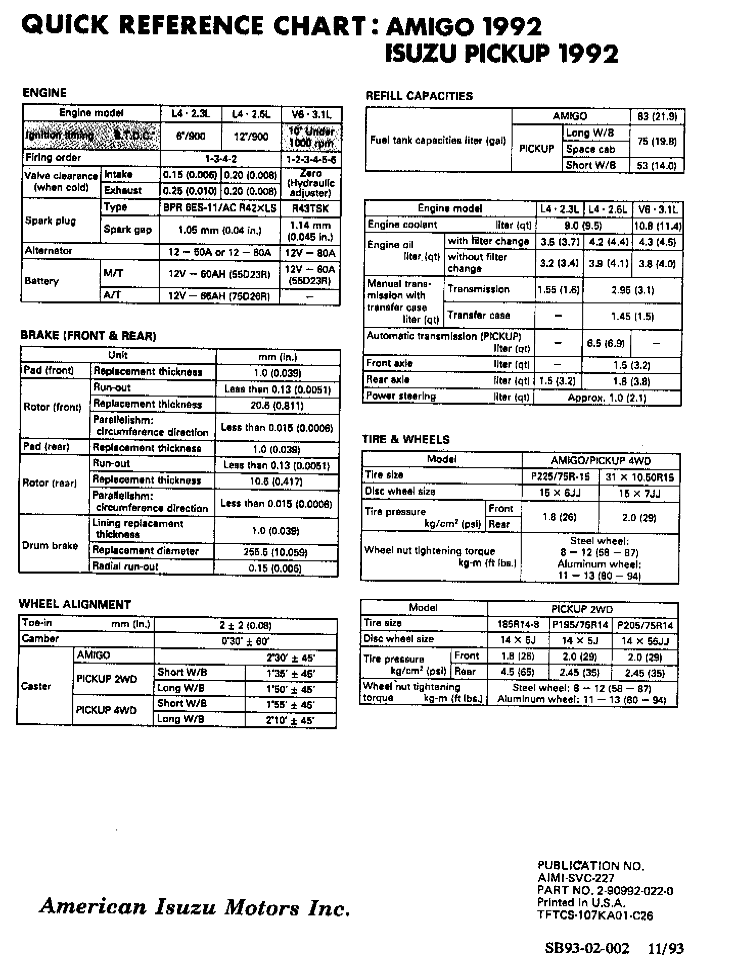 1992 Pickup/Amigo (TF/TC) 6E2-3, Back cover