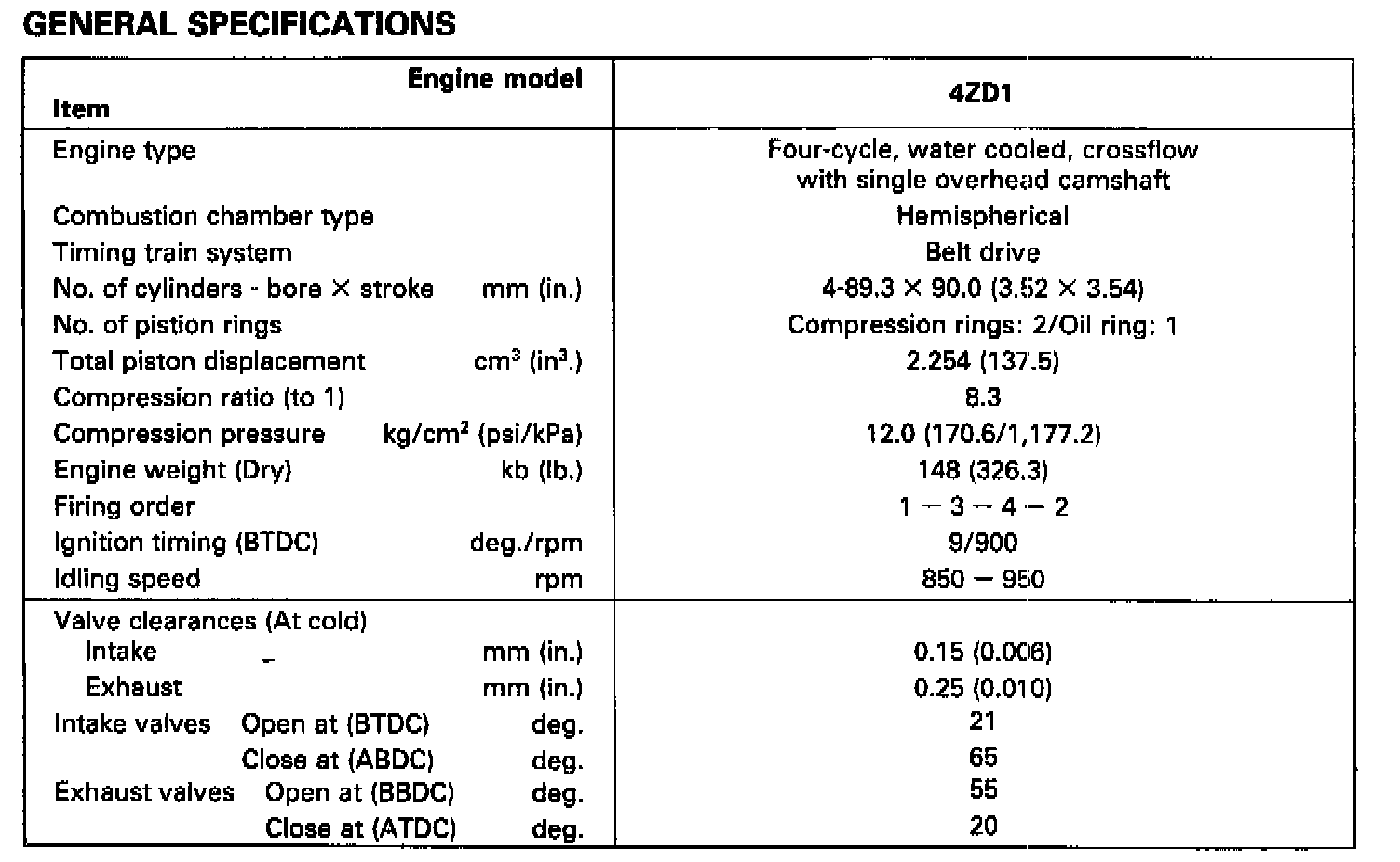 Pickup 2WD L4-2254cc 2.3L SOHC (4ZD1) MFI