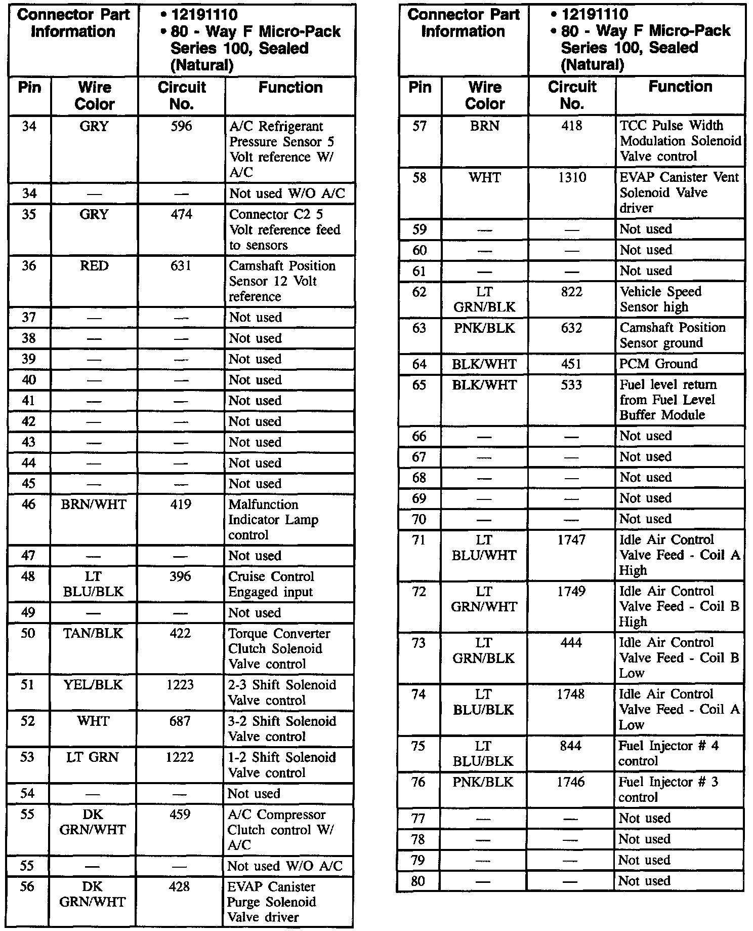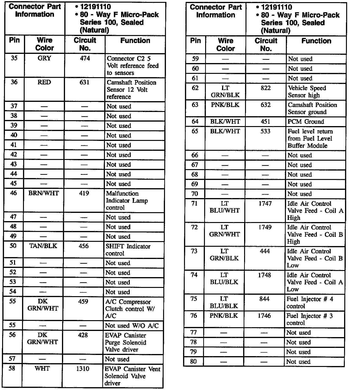 Connector C2 (2.2L W/ A/T, W/ A/C)