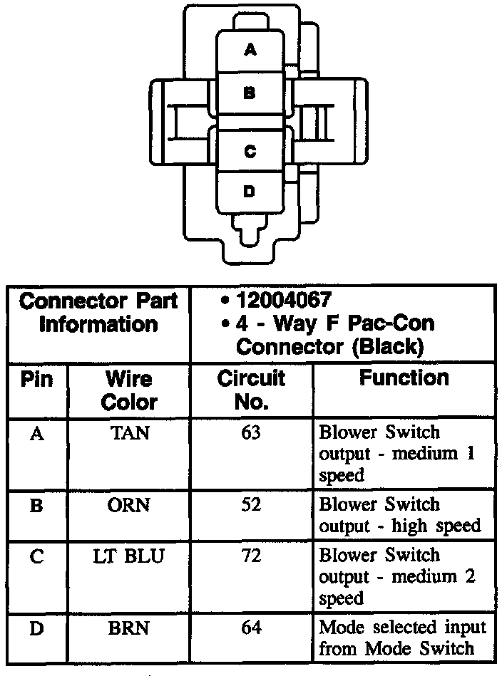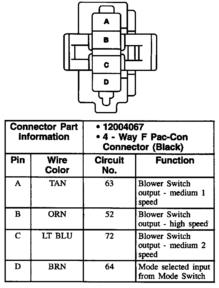 Heater And A/C Controller Connector C3 (Blower Controls)