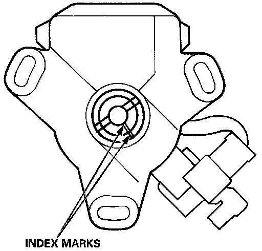 2. Align the index mark on the distributor ignition (DI) housing with the index mark on the end of the shaft.