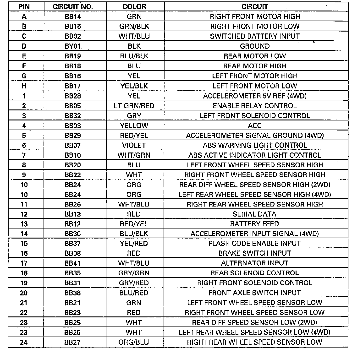 EBCM Connector Chart: