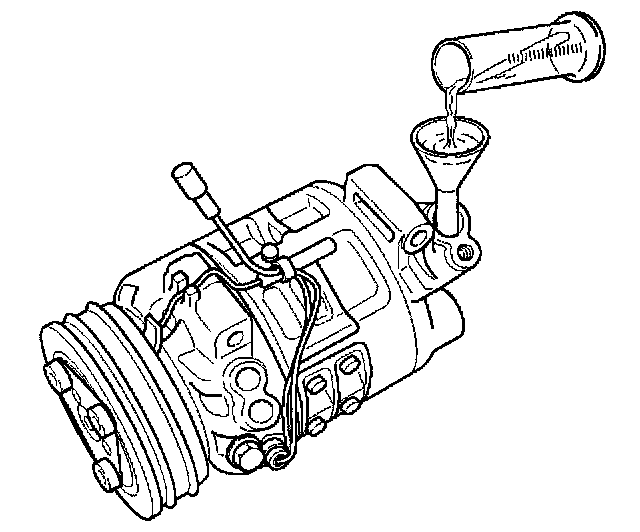 NOTES FOR NEW COMPRESSOR: The new compressor is filled with 150 cc (5.0 fl.oz.) of compressor oil and nitrogen gas. When mounting the compressor on the vehicle, perform the following steps:1. Gently release nitrogen gas from the new compressor.