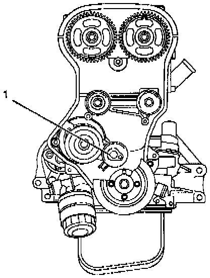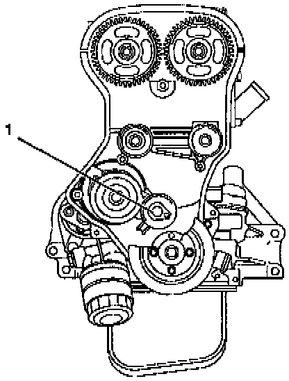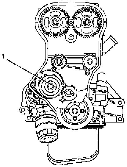 8. Remove fixing bolt of timing belt tensioner then remove timing belt tensioner (1).