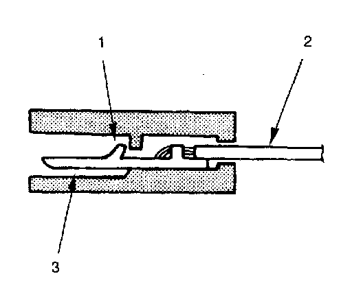 2. Insert the pin (3) from the connector wire (2) side. Push the pin in until the tang lock closes firmly.