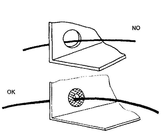 3. Use a grommet or guard tube to protect the wiring harness from contacting a sharp edge or surface.