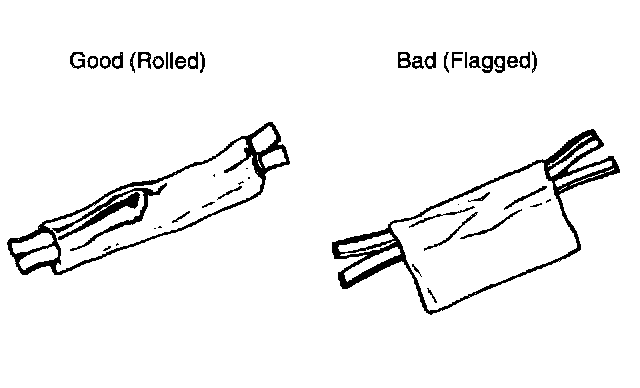 Does not flag the tape. Flagged tape may not provide enough insulation, and the flagged ends will tangle with the other wires in the harness as shown.