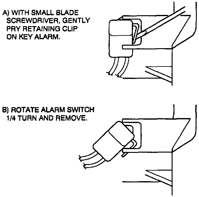 - Gently pry retaining clip on alarm switch with small blade screwdriver.