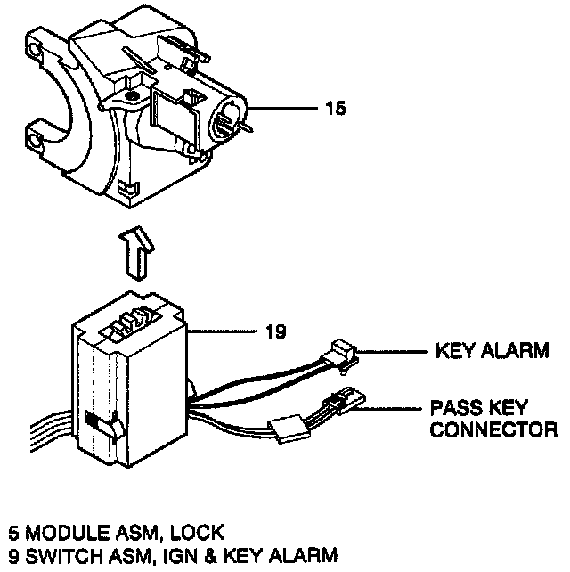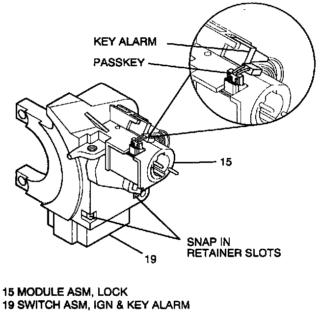 - Use small screwdriver to push on slots to remove ignition & key alarm assembly.