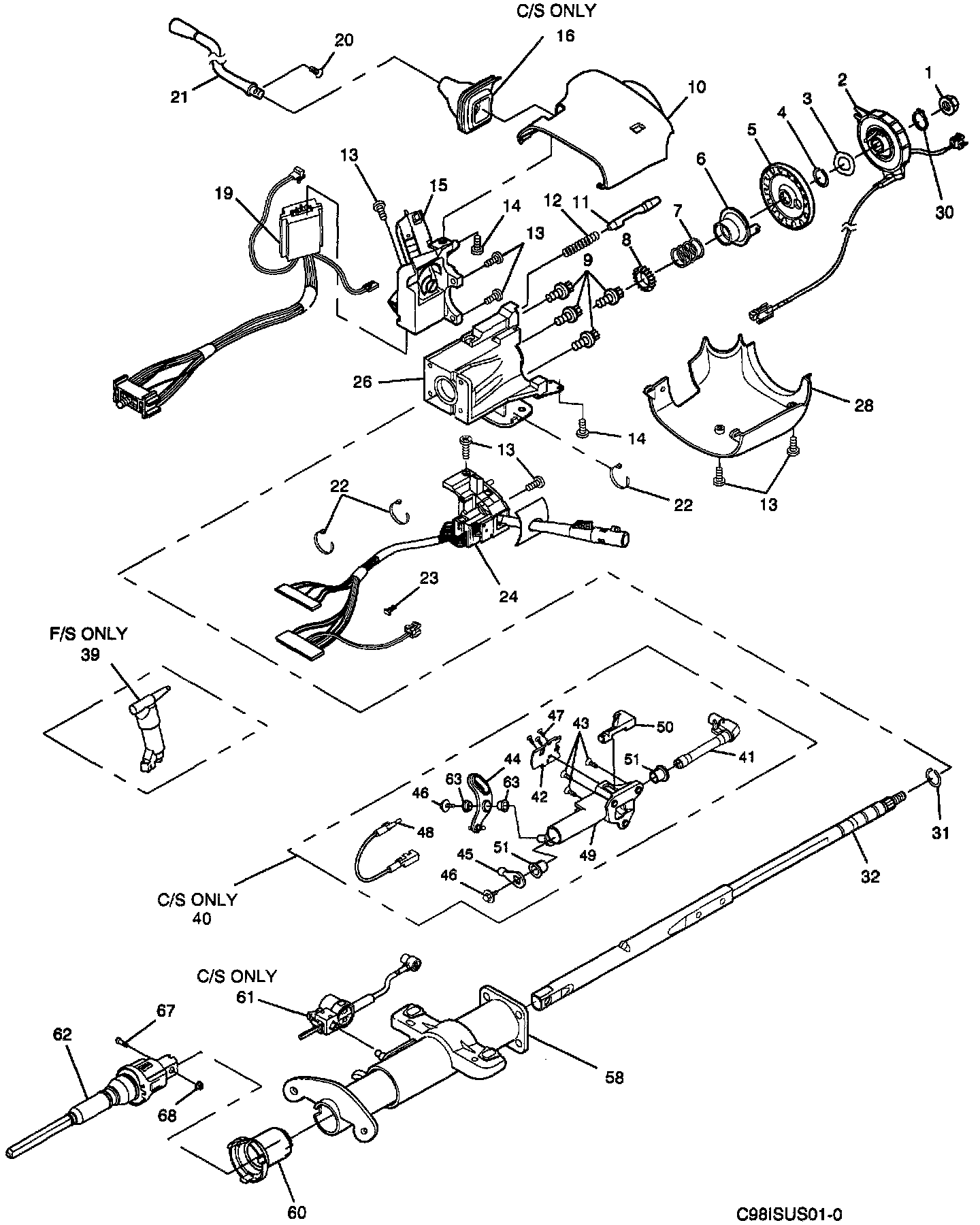 1. Do steps 1 through 4, "Remove or Disconnect", UPPER COLUMN HOUSING COMPONENTS, Upper Column Housing Components