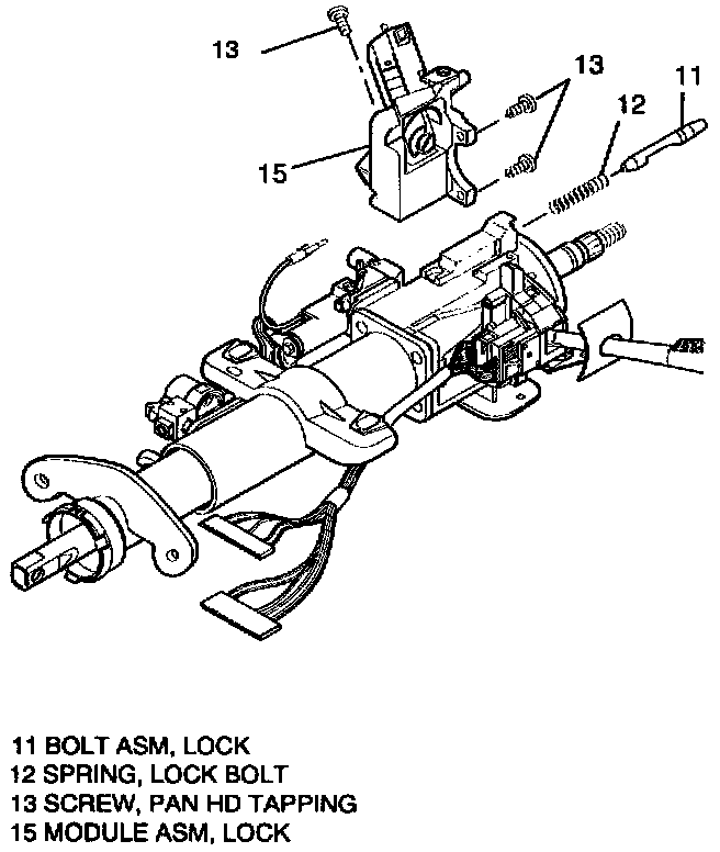 - Push lock bolt (11) into steering column housing assembly (26) until flush.