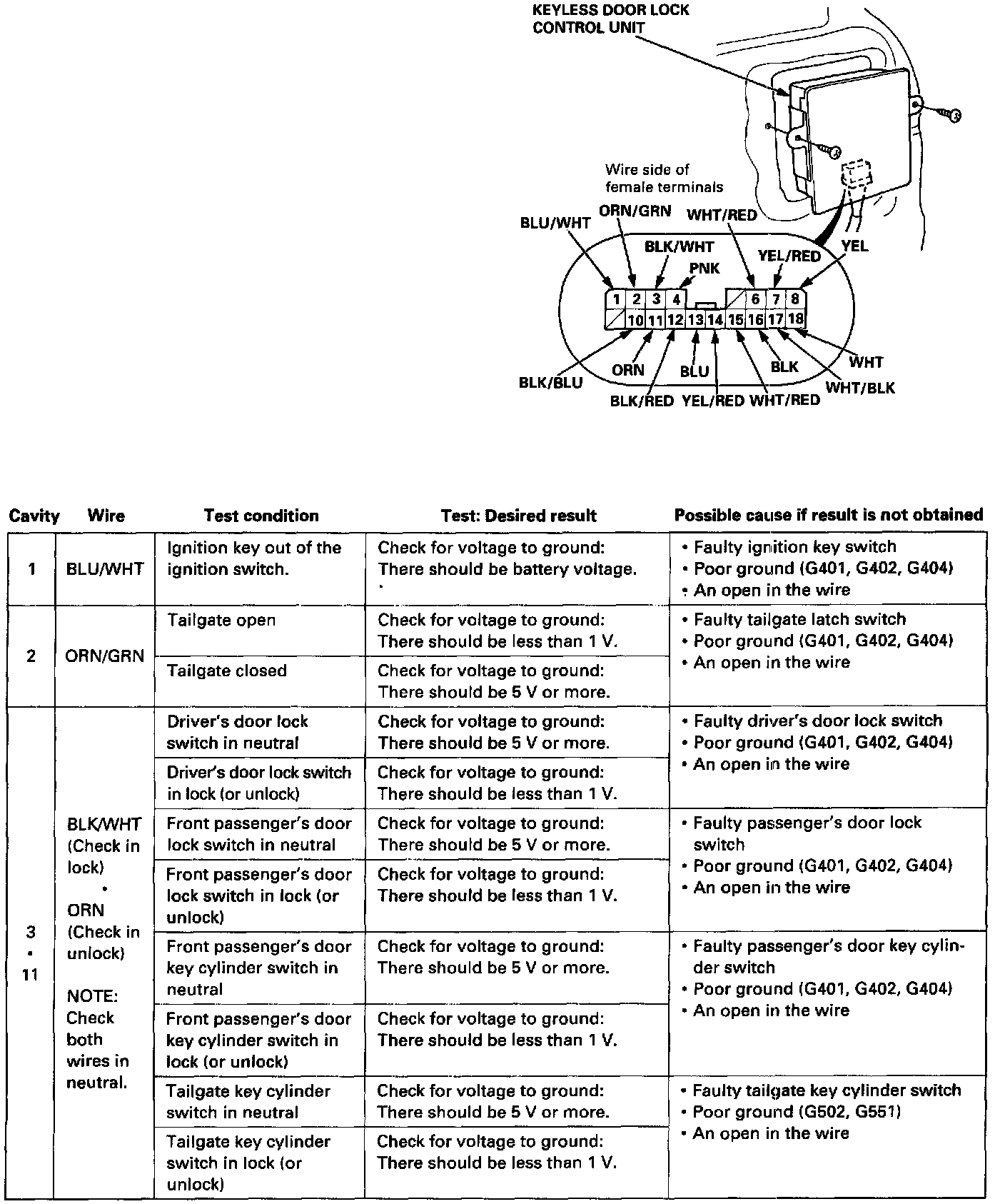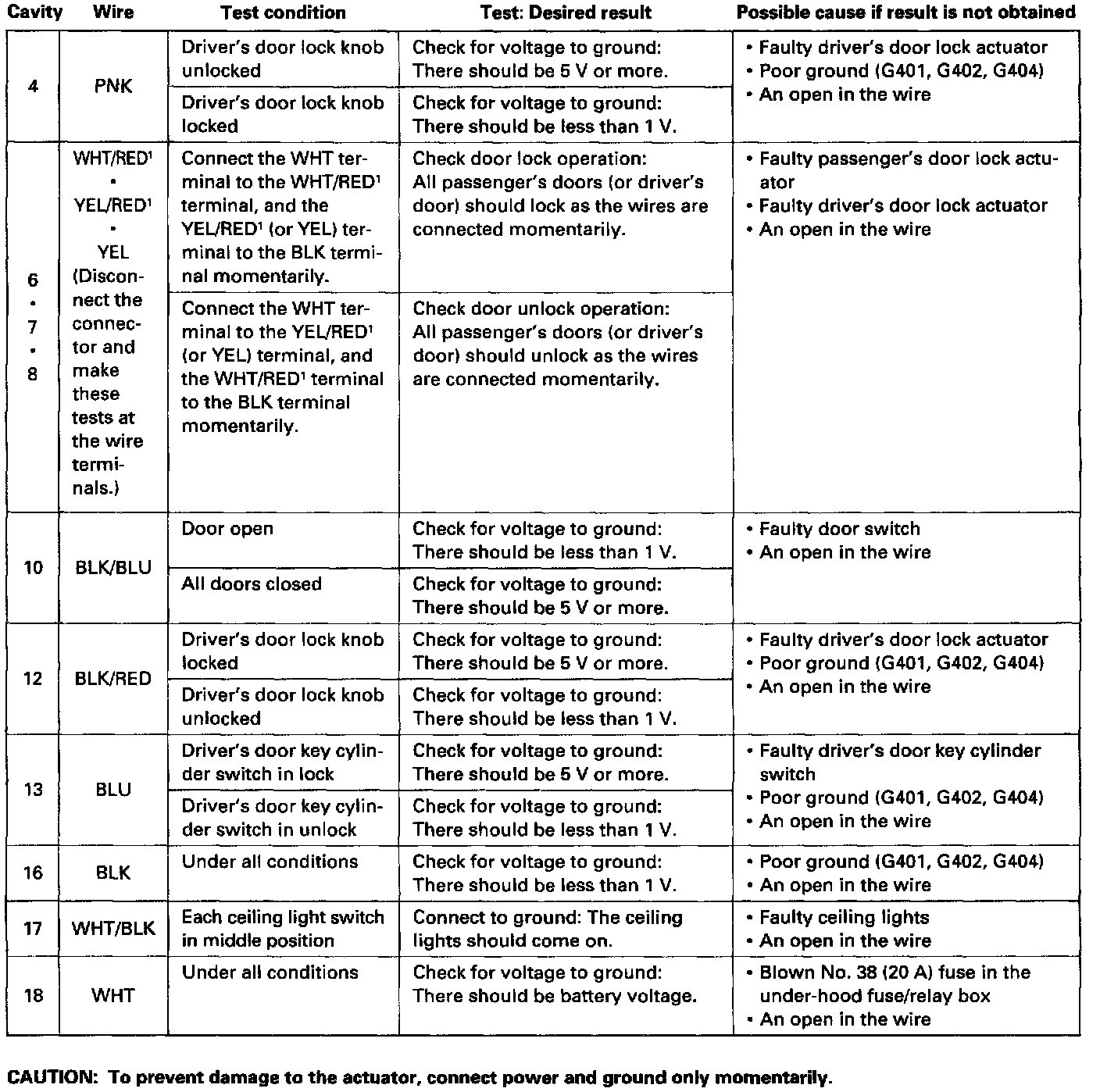 - If the terminals look OK, leave the harness connected, and make the tests shown by probing the back of the connectors.