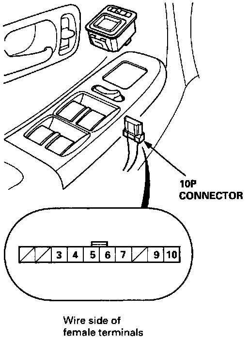 2. Disconnect the 10P connector from the power mirror switch.
