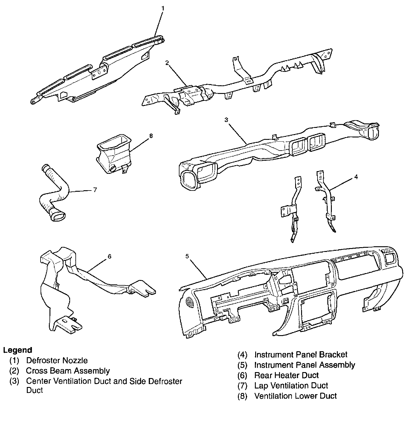 Rear Heater Duct, Defroster Nozzle and Ventilation Duct: