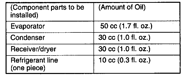 When replacing the system component parts, supply the following amount of oil to the component parts to be installed.