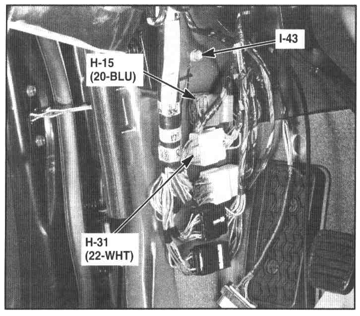 Behind left kick panel