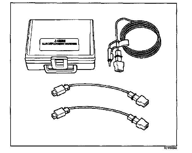 WARNING: TO AVOID DEPLOYMENT WHEN TROUBLESHOOTING THE SRS, DO NOT USE ELECTRICAL TEST EQUIPMENT SUCH AS A BATTERY-POWERED OR AC-POWERED VOLTMETER, OHMMETER, ETC., OR ANY TYPE OF ELECTRICAL EQUIPMENT OTHER THAN THAT SPECIFIED IN THIS MANUAL. DO NOT USE A NON POWERED PROBE-TYPE TESTER. INSTRUCTIONS IN THIS MANUAL MUST BE FOLLOWED CAREFULLY, OTHERWISE PERSONAL INJURY MAY RESULT.J-41433 SRS Driver/Passenger Load Tool