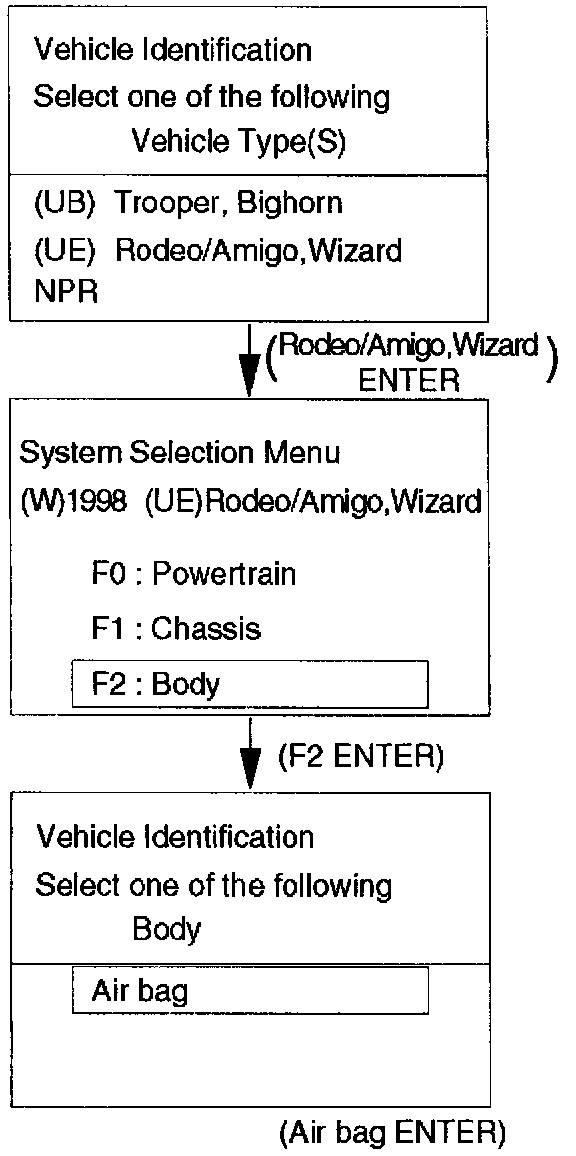 From 1998 RODEO (UE), dealer service departments are recommended to use Tech 2. Please refer to Tech 2 scan tool user guide.