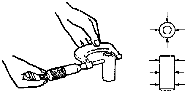 Measure the inside diameter of the connecting rod small end. If the fitting interference between the small end and pin does not conform to the specified value the connecting rod must be replaced.