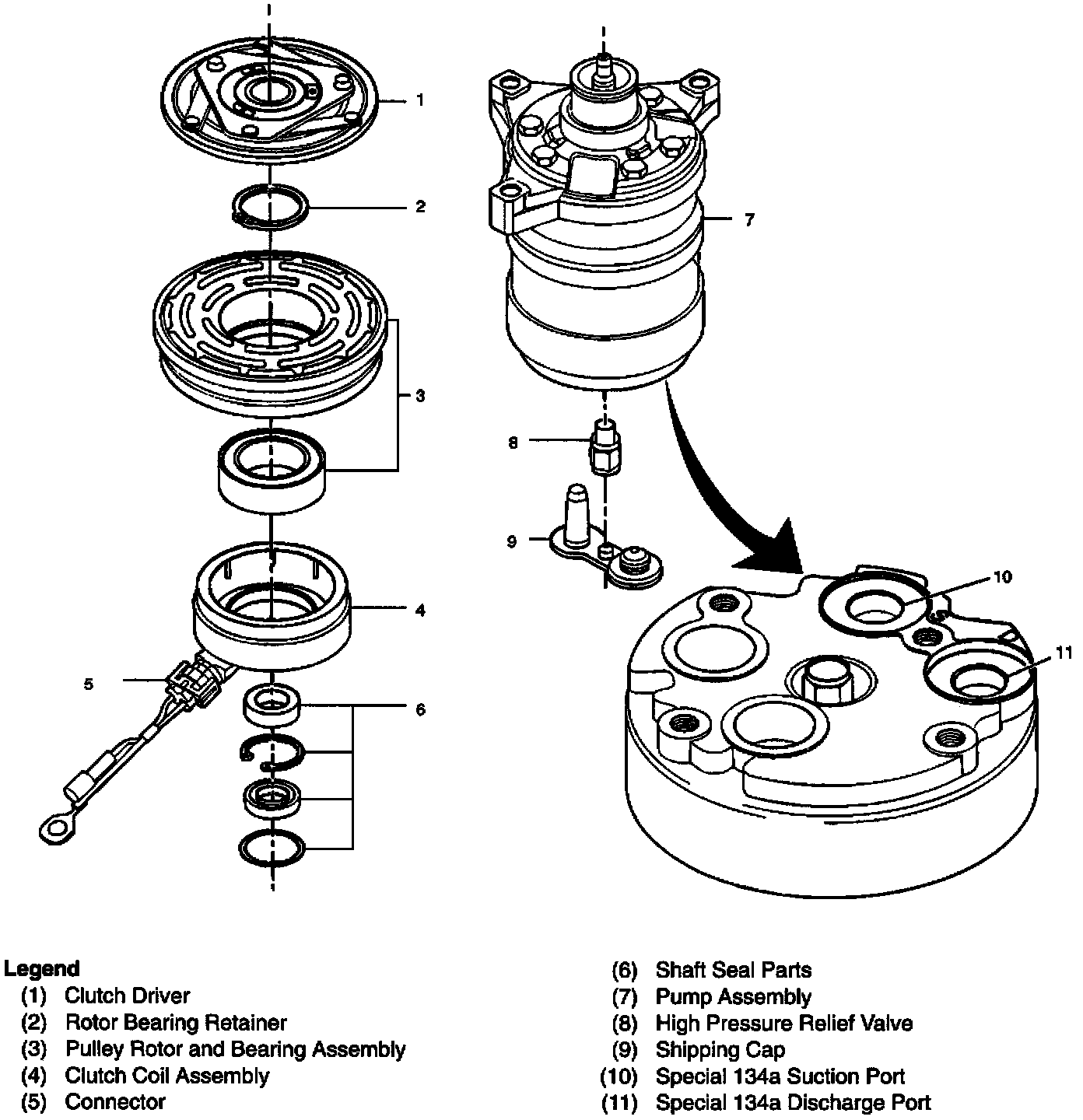 The HD6/HT6 Automotive Conditioning Compressor and Clutch Assembly is a light weight, six cylinder axial design consisting of three double ended pistons and weighs 5.8 kg (12.7 lbs.)Although this compressor is the same for all vehicle applications, there are differences in installations, mounting brackets, pulleys, torque cushions and switches, none of which will affect the following overhaul procedures.