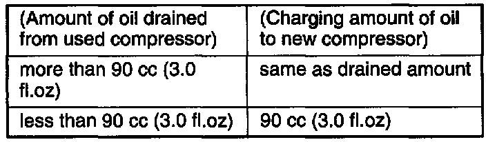 The oil is not charged in compressor (service parts). So it is necessary to charge the proper amount of oil to the new compressor.