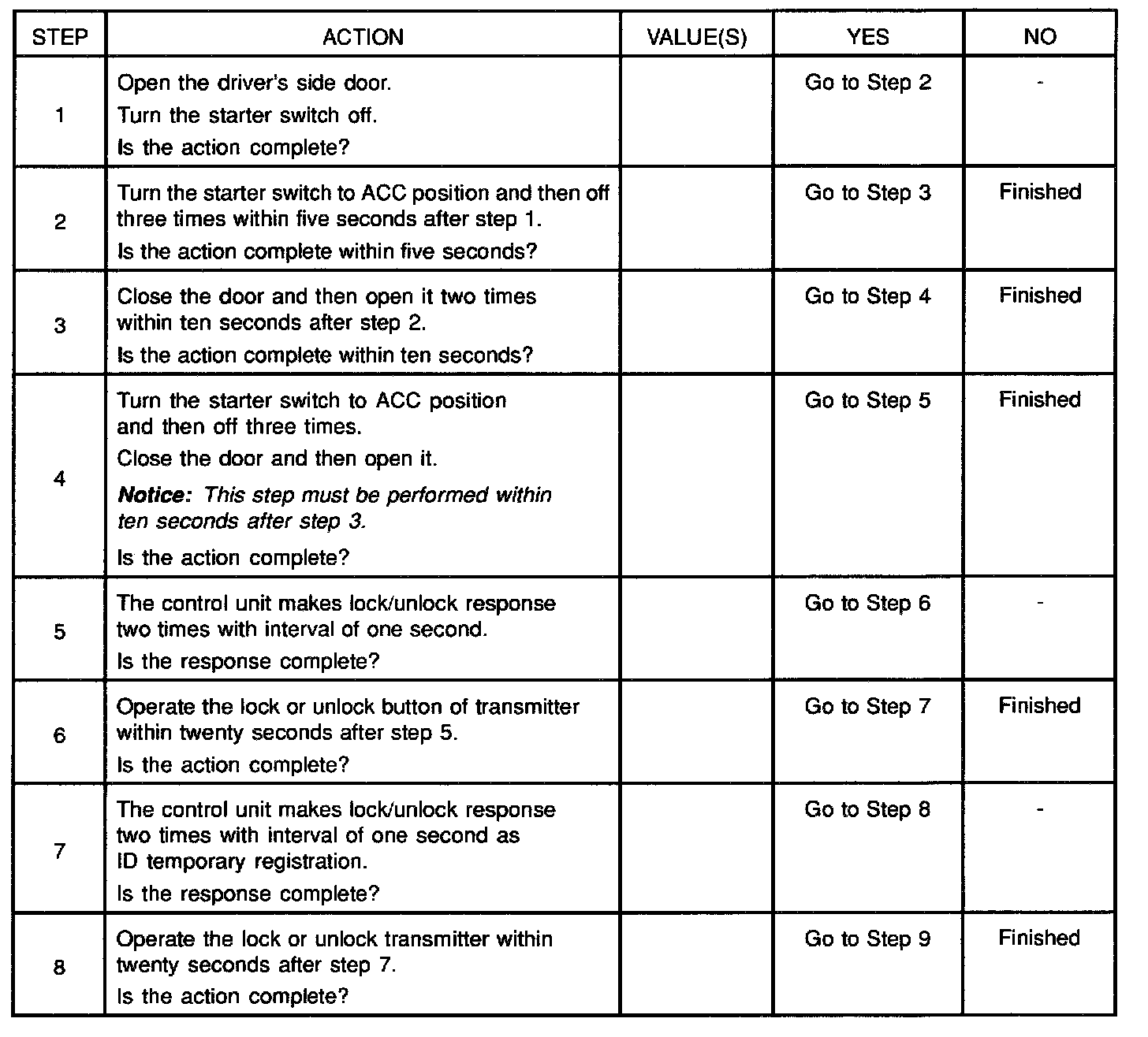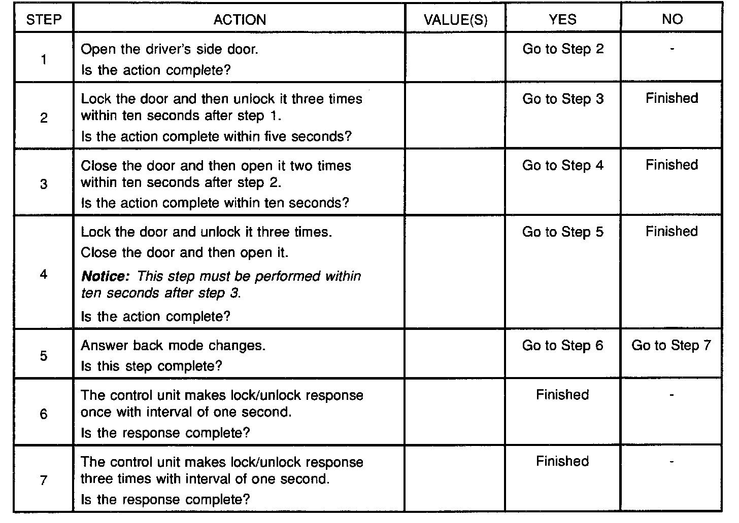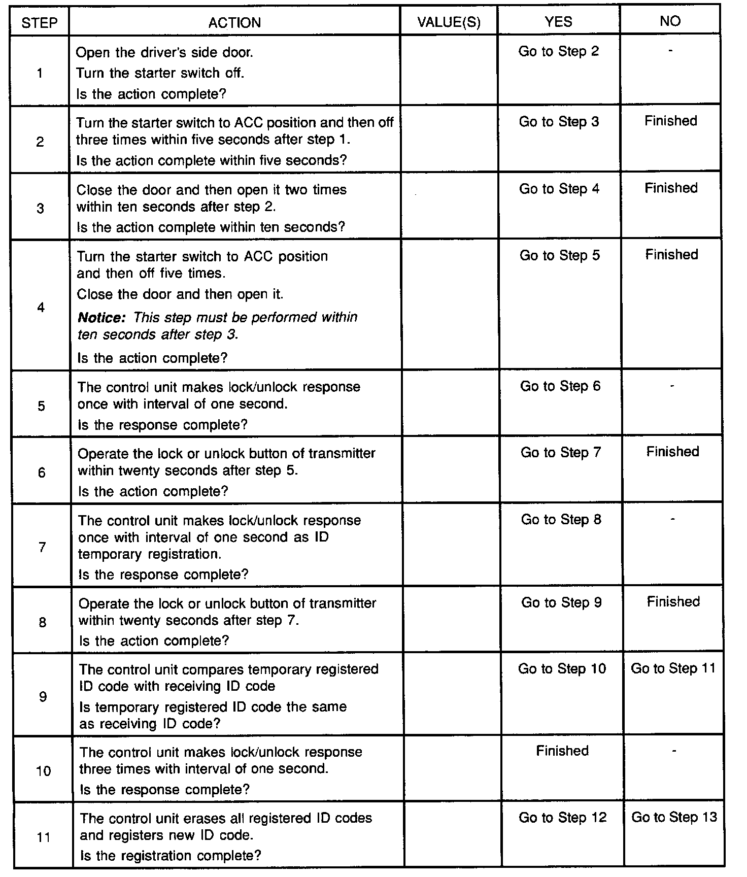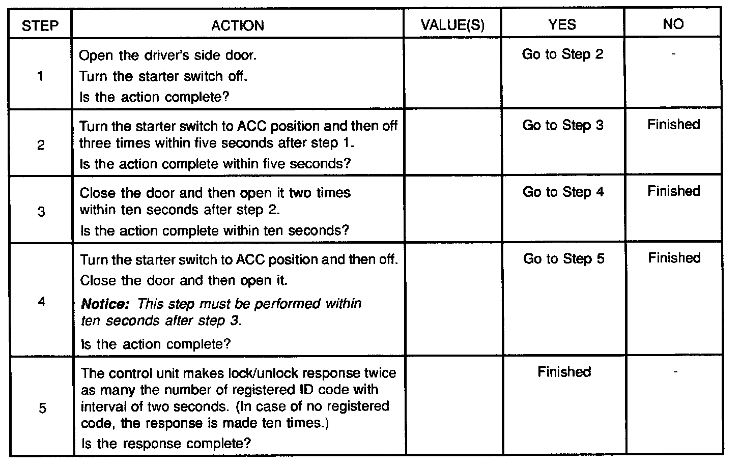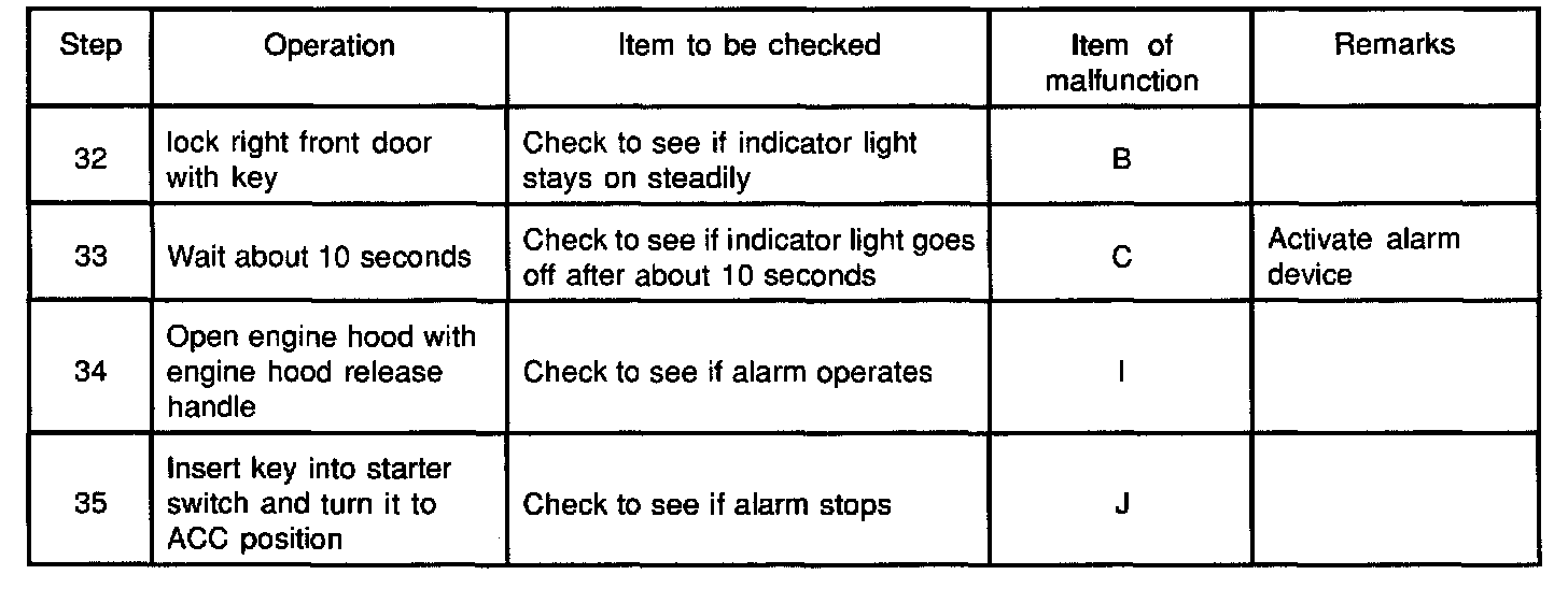 Anti-theft horn, as an answer back function for the transmitter operation, changes from available into unavailing or from unavailing into available by this procedure.