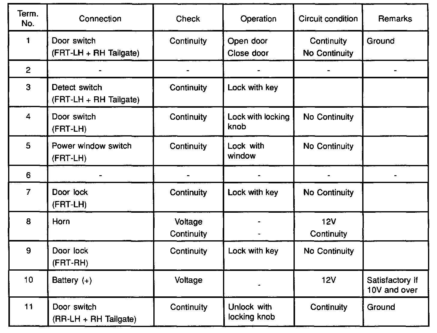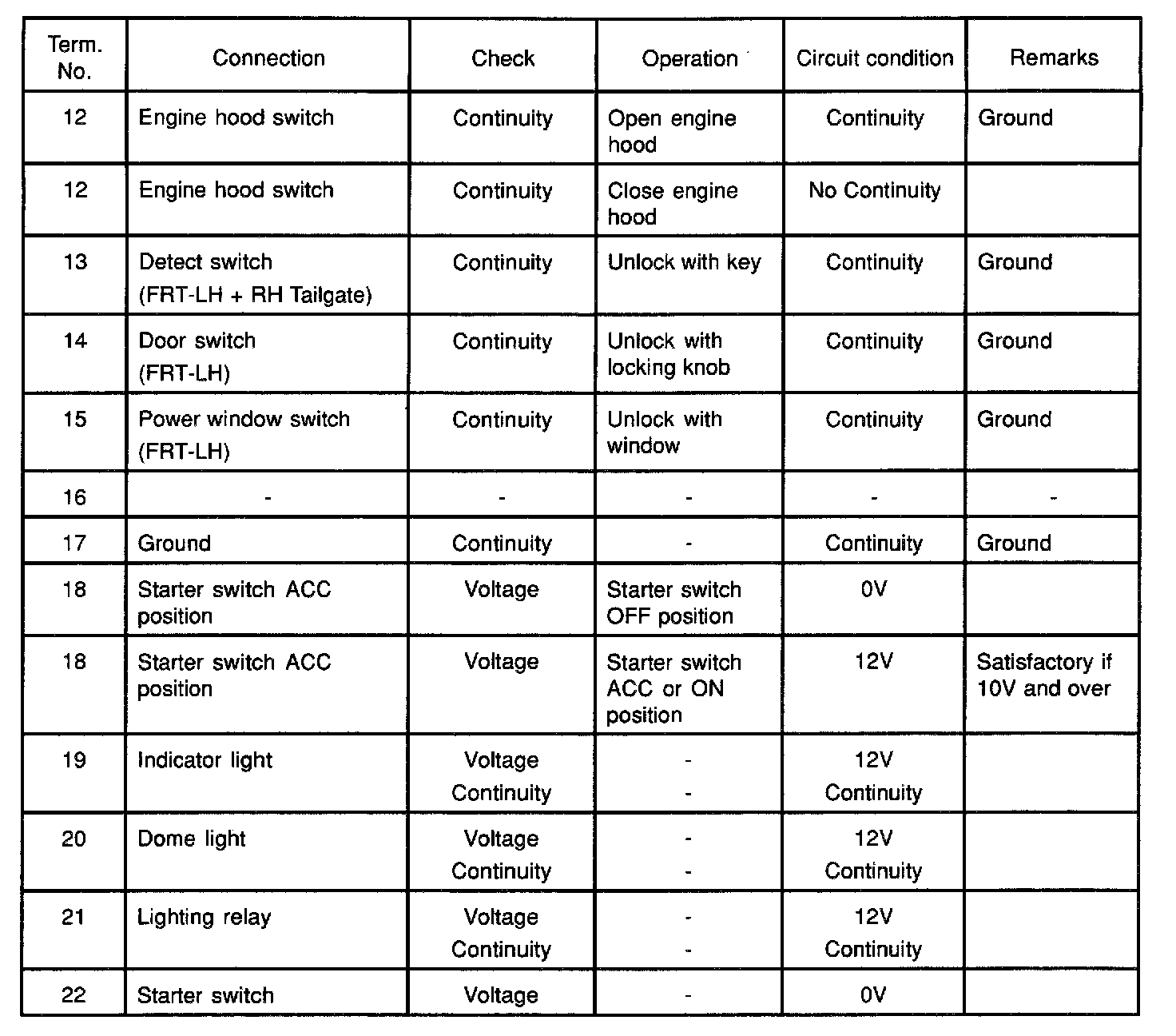 Connector Checking Table