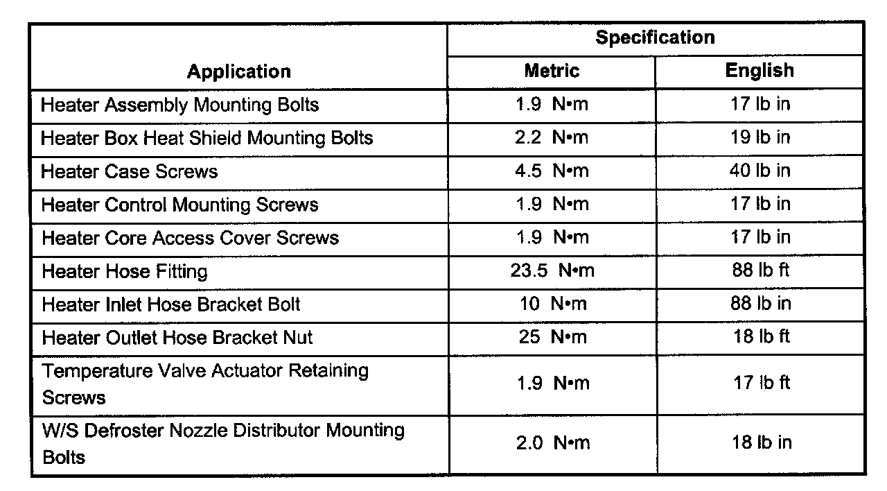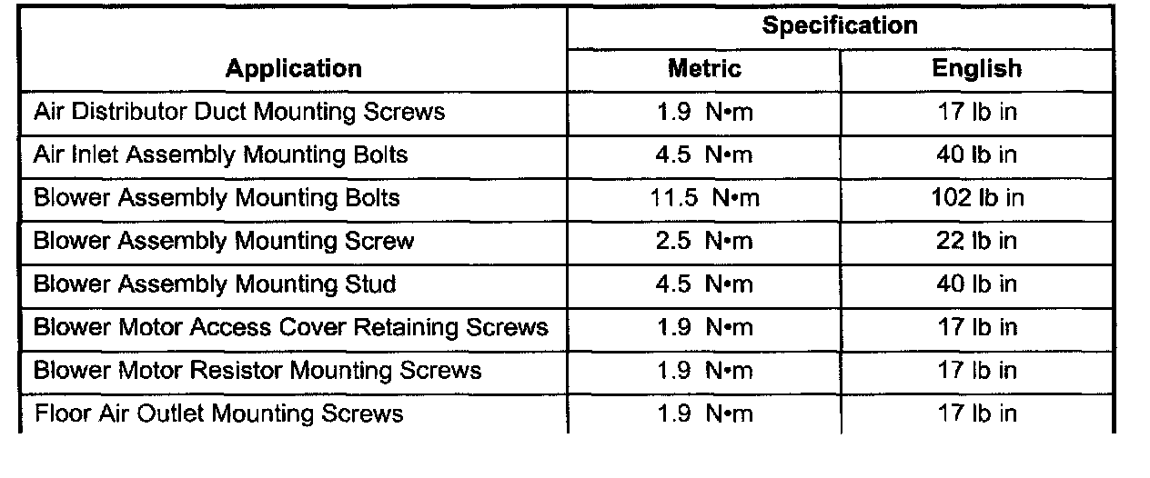Fastener Tightening Specifications: