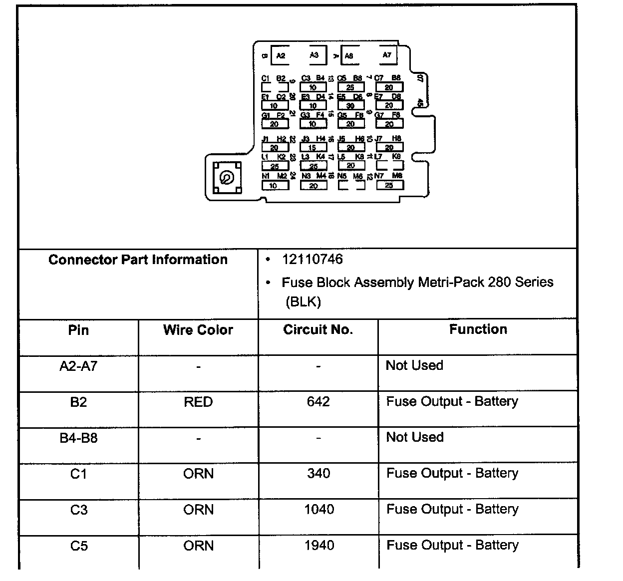 Underhood Fuse Block Connector C2: