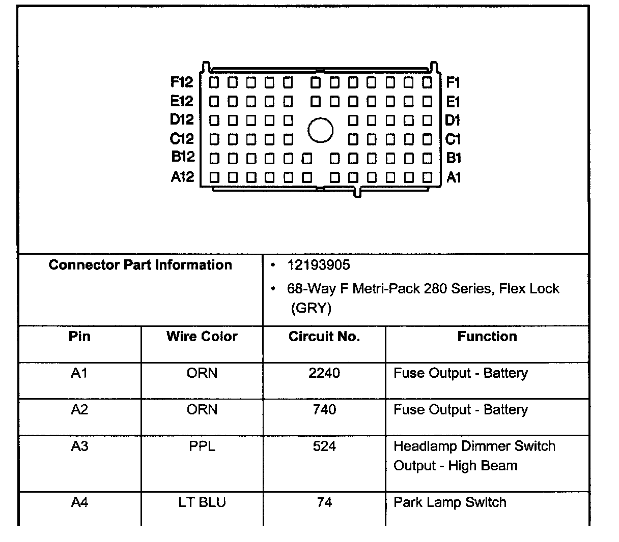 Underhood Fuse Block Connector C4:
