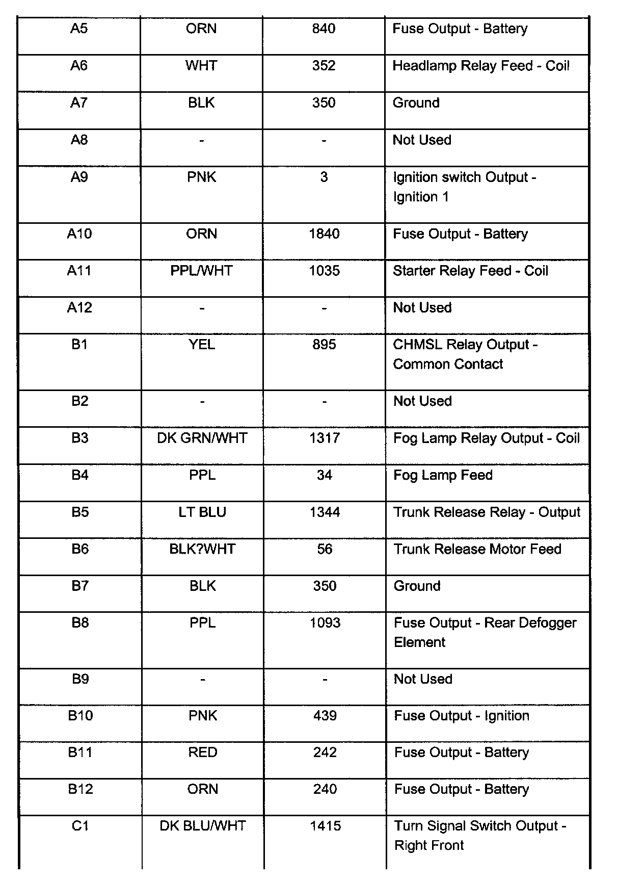 Underhood Fuse Block Connector C1: