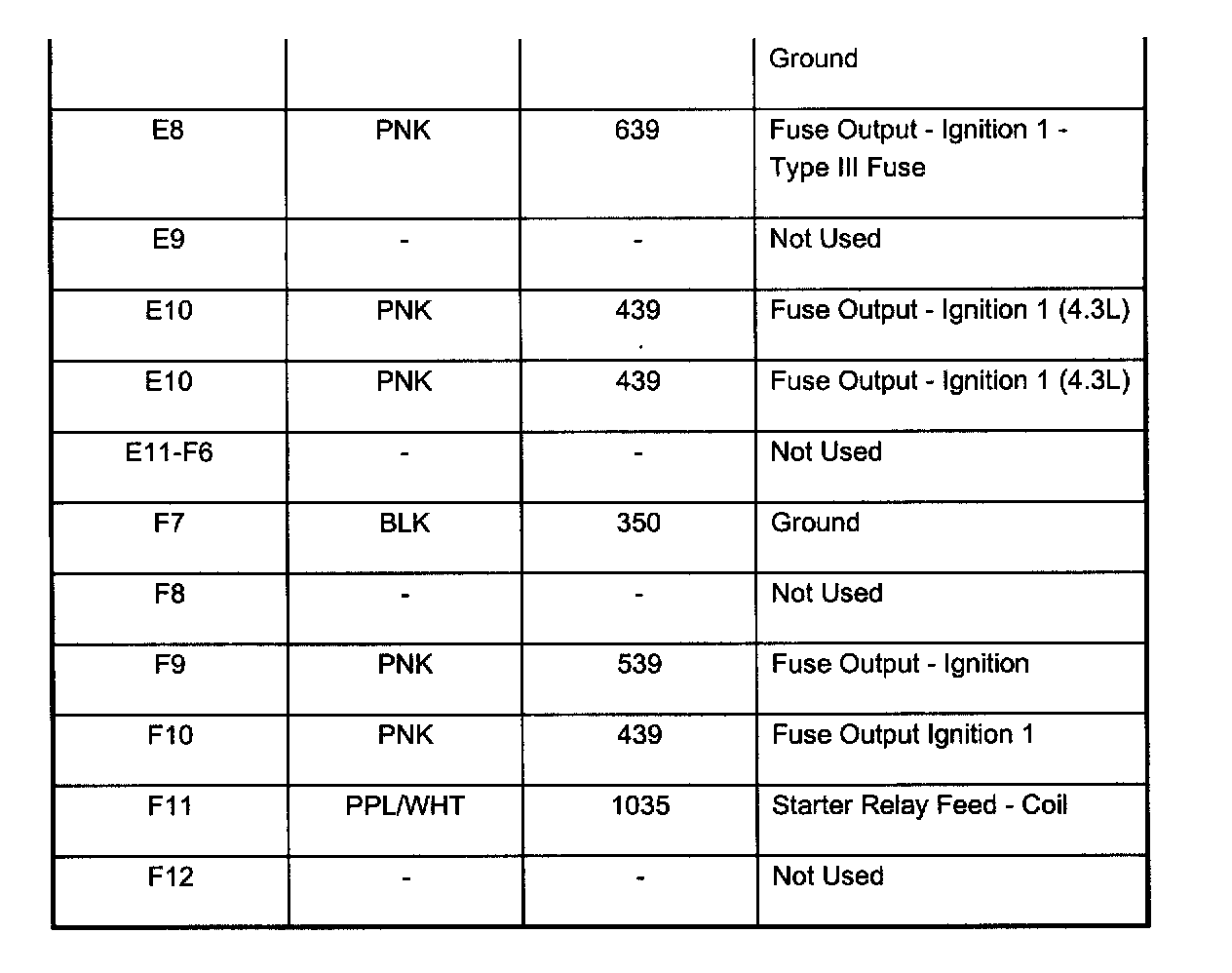 Pin E8 - F12: