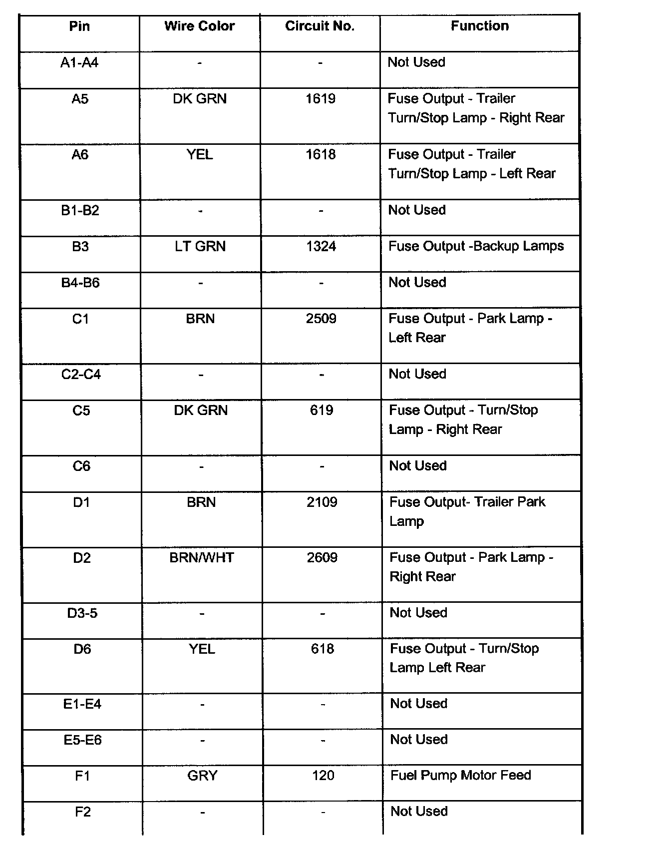Pin A1 - F2: