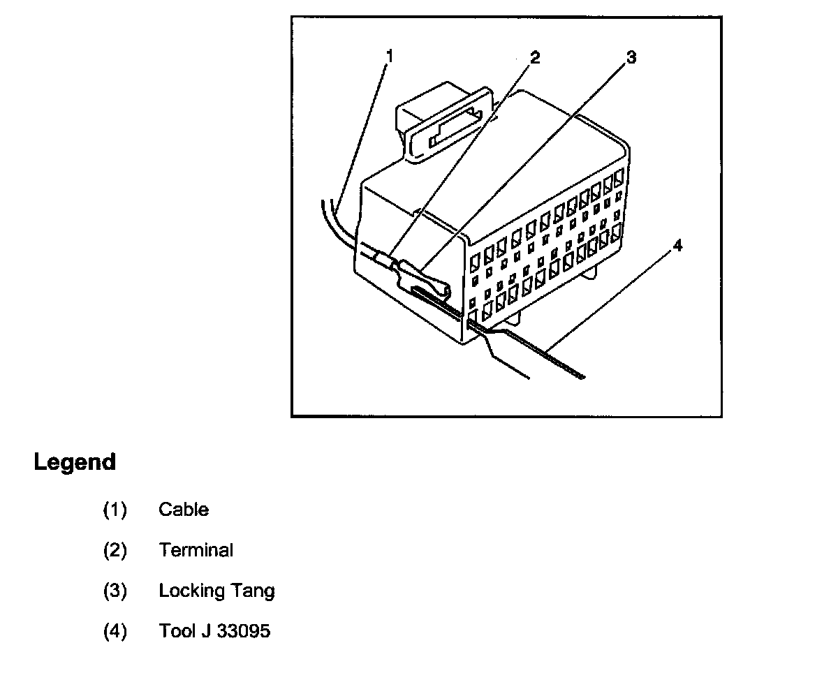 Use care when probing connectors and replacing terminals. A short between opposite terminals may damage components. Use jumper wires between connectors when testing circuits. DO NOT probe through weatherpack TM seals. The J 35616 connector test adapter kit is the only recommended method of probing the following components:
