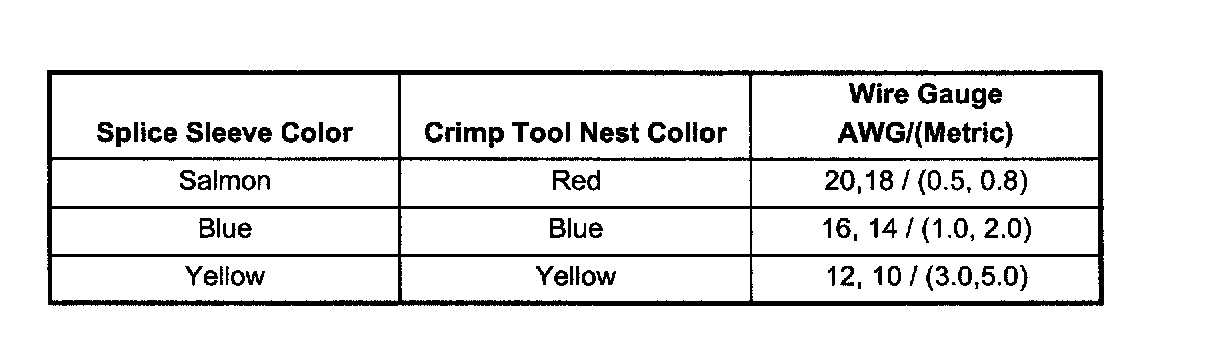 Crimp and Seal Splice Table
