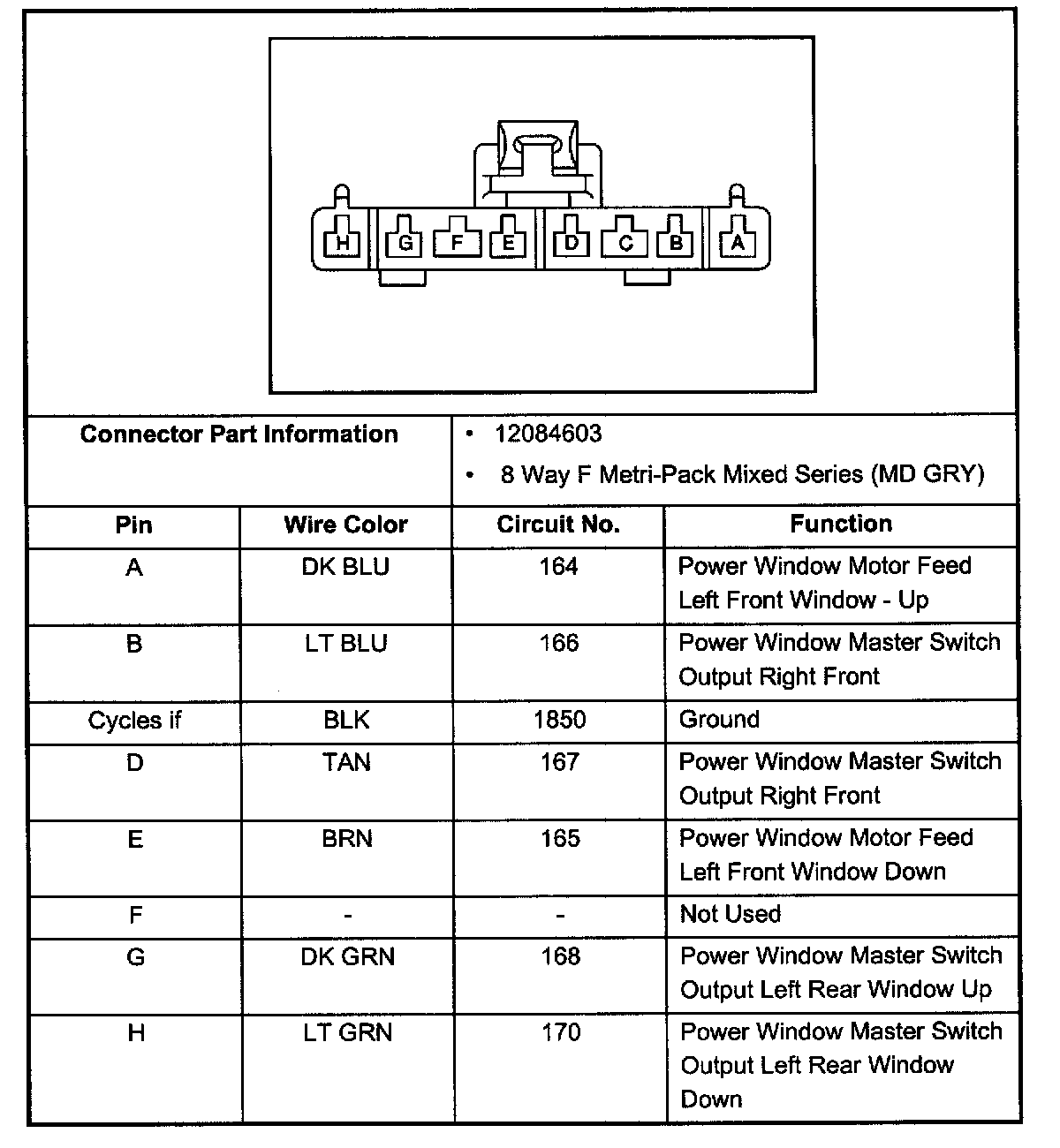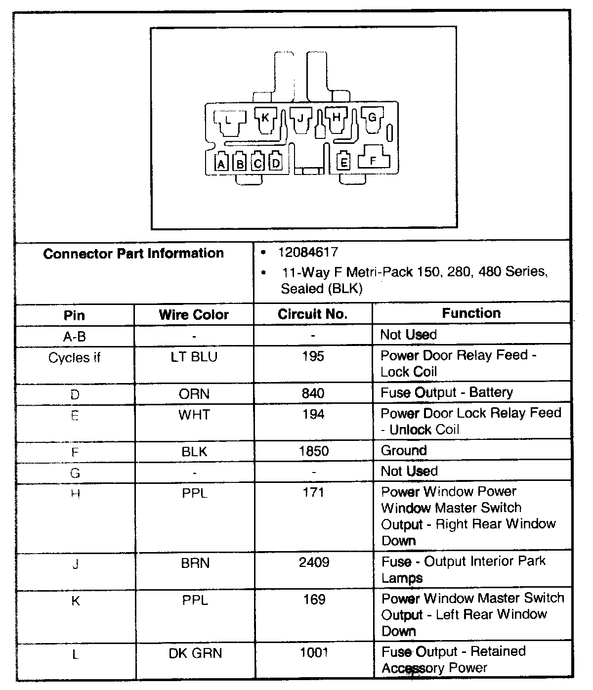 Door Lock and Side Window Switch, Left Front, Connector C1: