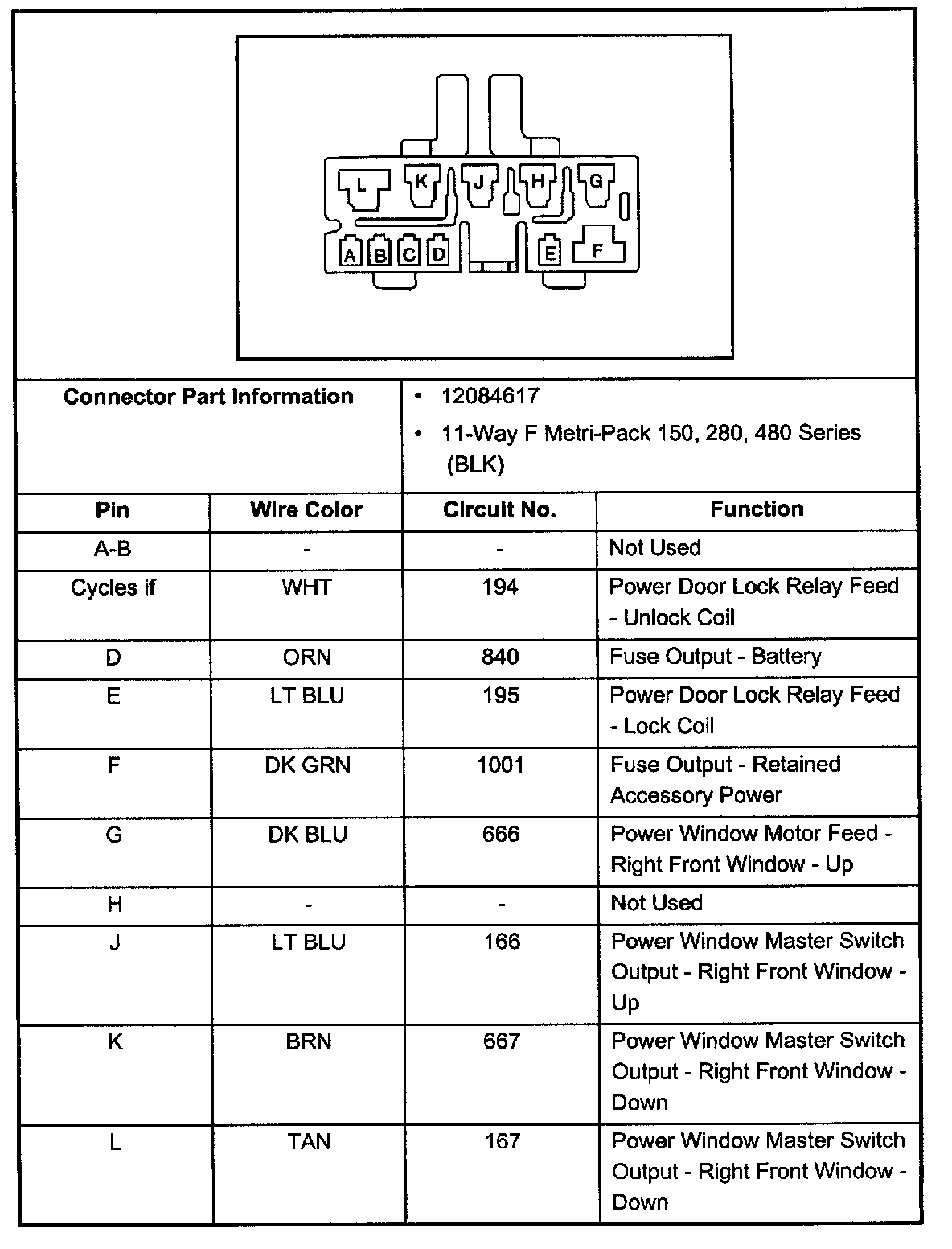 Door Lock And Side Window Switch, Right Front, Connector C1: