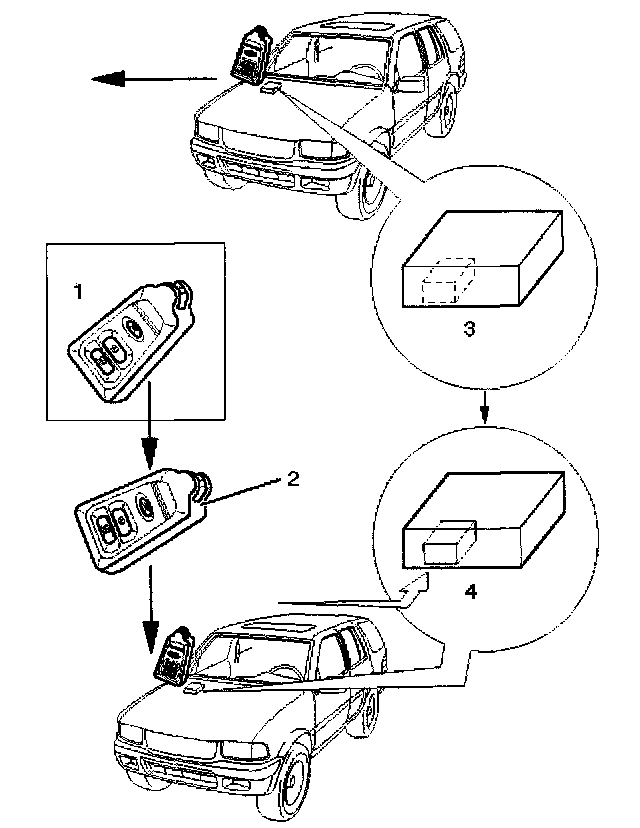 3. Check that the door lock remote control operation works (3). (4).