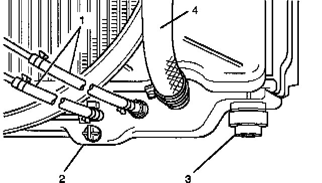 Before draining the cooling system, inspect the system and perform any necessary service to ensure that it is clean, does not leak and is in proper working order. The Engine Coolant (EC) level should be between the "MIN" and "MAX" lines of reserve tank when the engine is cold. If low, check for leakage and add EC up to the "MAX" line. There should not be any excessive deposit of rust or scales around the radiator cap or radiator filler hole, and the EC should also be free from oil. Replace the EC if excessively dirty.1. Completely drain the cooling system by opening the drain plug (2) at the bottom of the radiator.